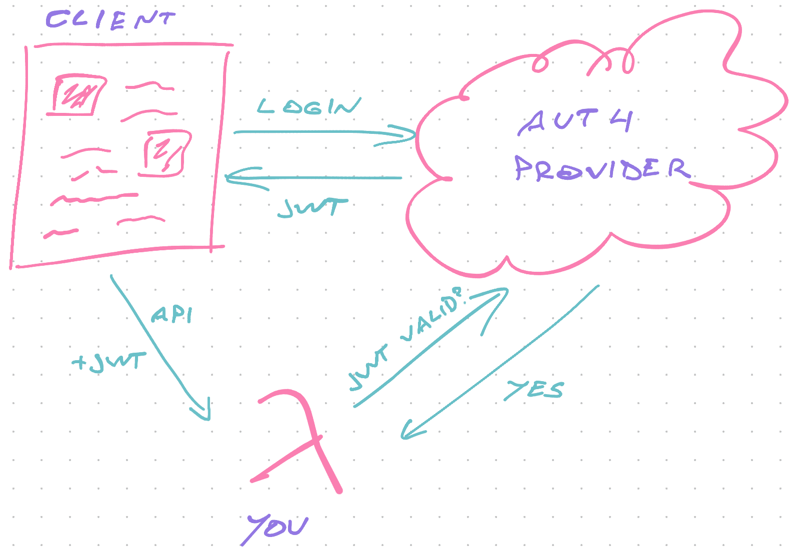 That means a login dance between your server and the auth provider. You'll need to send your own JWT token to ask if the user's token is valid.